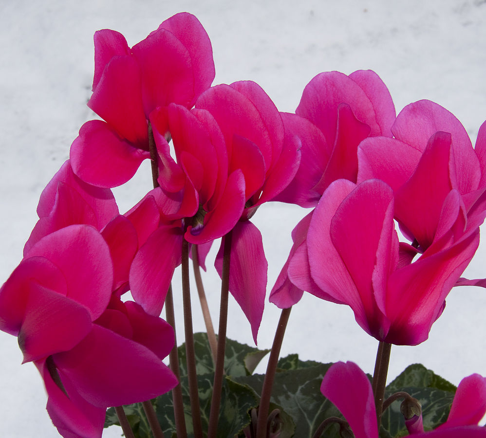 En invierno, en los días fríos y grises, los cyclamen nos traen color y calidez, ya sea en el exterior o dentro de casa. Sus colores desafían al frio y al mal tiempo. Y nos acompañan hasta el final de la primavera.